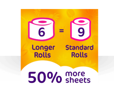 50% More Sheets than Cushelle® Quilted standard rolls.